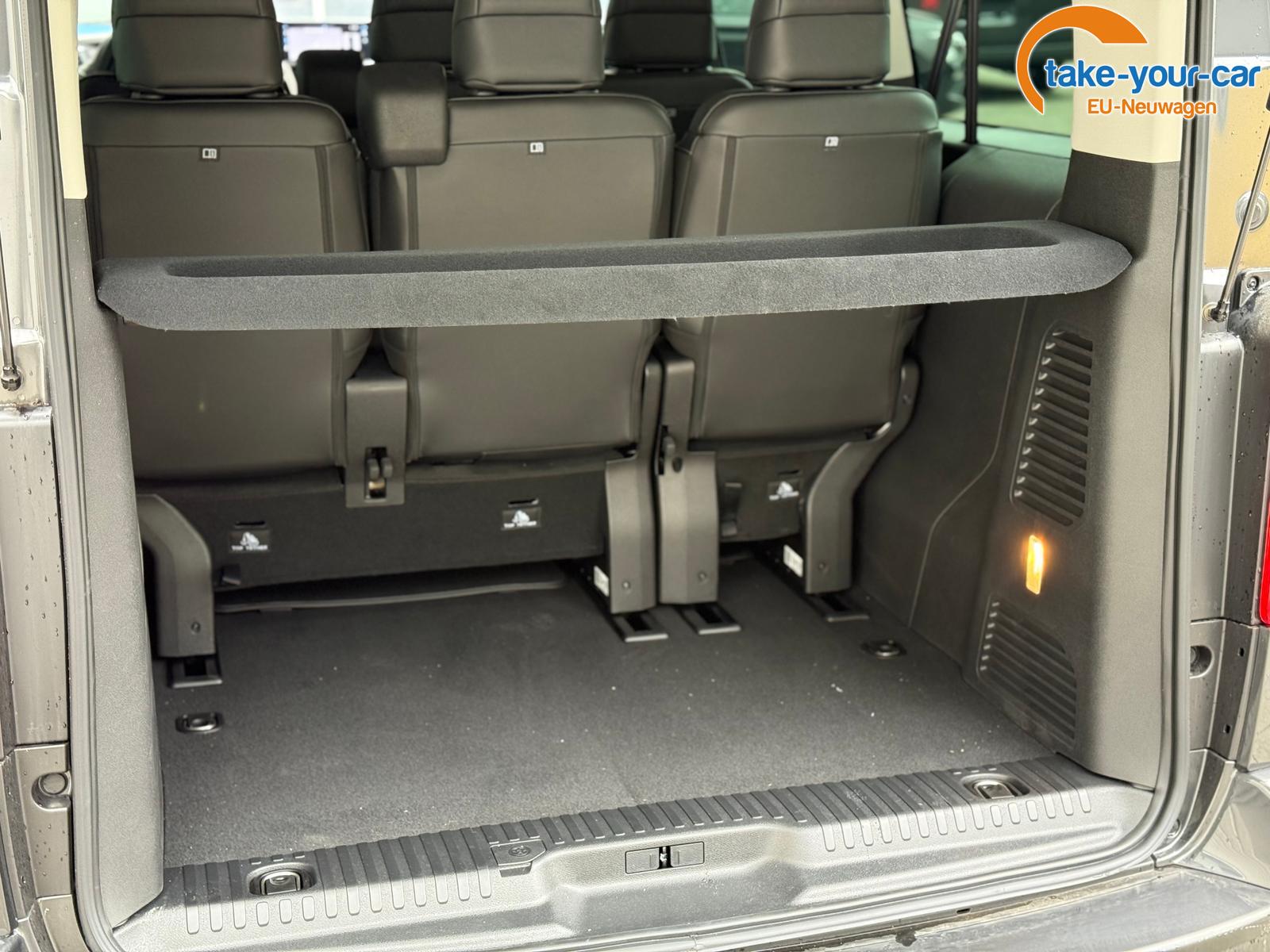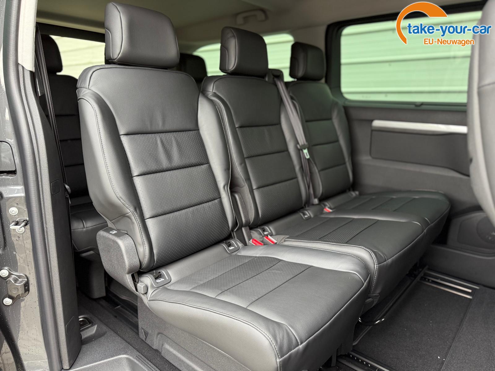 • Reihe 2: Sitzbank 2/3:1/3 auf Schienen, umklappbar und herausnehmbar, Rückenlehne in der Neigung einstellbar
