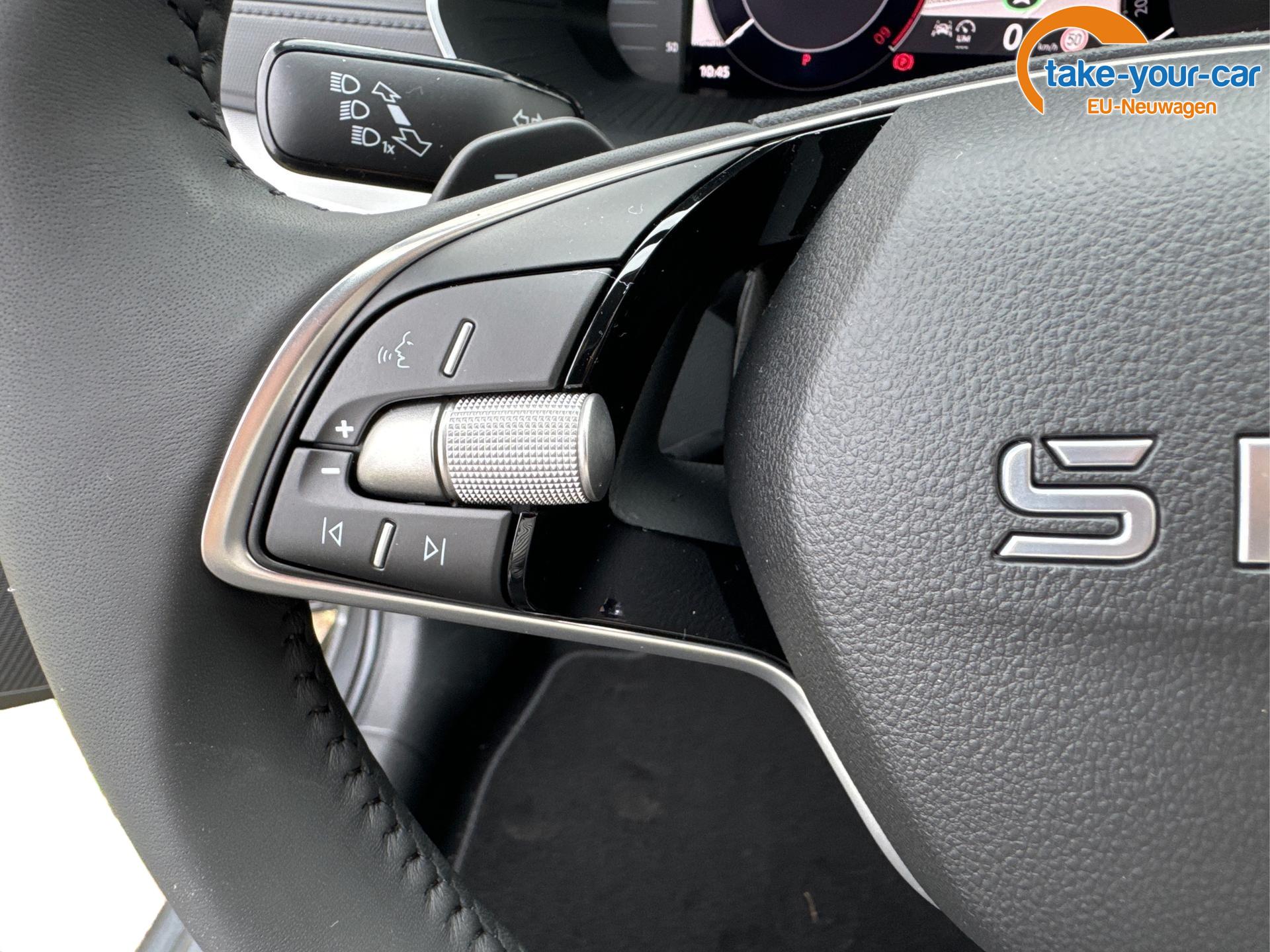 • Höhen- und längeneinstellbares Lederlenkrad mit Multifunktionstasten, bei DSG inkl. Schaltwippen