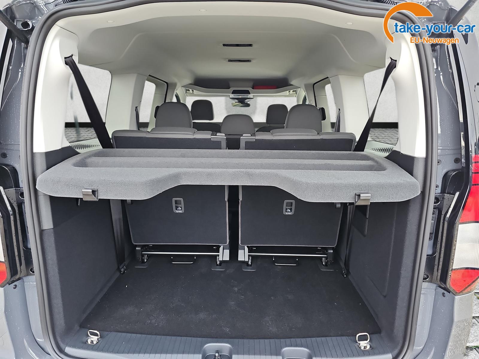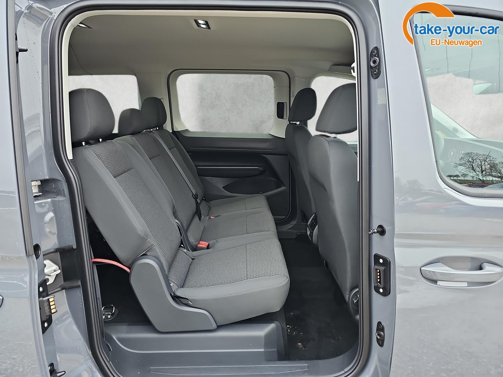 • 2er-Sitzbank und ein Einzelsitz in der 2. Sitzreihe (klapp-, wickel-, herausnehmbar) mit Isofix außen, 2 Einzelsitze in der 3. Sitzreihe