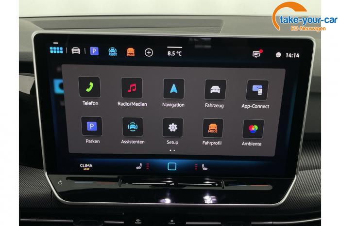 2 USB-C-Schnittstellen vorn, 2 USB-C-Ladebuchsen an der Mittelkonsole hinten, 6+1 Lautsprecher, App-Connect Wireless für Apple CarPlay und Android Auto, Digitaler Radioempfang DAB , Navigationssystem Discover, Telefonschnittstelle Comfort mit induktiver Ladefunktion, Abbiege- und Schlechtwetterlicht, Ambientebeleuchtung 30-farbig inkl. LED-Leuchte im Fußraum vorn, Lichtfarbe wählbar, IQ.LIGHT - LED-Matrix-Scheinwerfer inkl. Licht-und-Sicht-Paket, LED-Rückleuchten mit dynamischer Blinkleuchte, Leuchtweitenregulierung dynamisch, mit dynamischem Kurvenfahrlicht, Seitenscheiben hinten und Heckscheibe abgedunkelt, Innenspiegel automatisch abblendend, Lenkradheizung, Mittelarmlehne vorn, Multifunktions-Sportlenkrad in Leder, mit Schaltwippen, Textilfußmatten vorn und hinten, 3 Klimazonen, Klimaanlage Air Care Climatronic mit Aktiv-Kombifilter, Bedienelementen hinten und 3-Zonen-Temperaturregelung, Assistenzpaket, Design-Paket Black Style inkl. IQ.LIGHT - LED-Matrix-Scheinwerfer, Sitzkomfortpaket, Technikpaket Park & Comfort Pro, Winterpaket, 18 Leichtmetallräder York in Schwarz, Oberfläche glanzgedreht, Airbag für Fahrer und Beifahrer, mit Beifahrerairbag-Deaktivierung, Diebstahlwarnanlage mit Innenraumüberwachung, Back-up-Horn und Abschleppschutz, Elektronische Differenzialsperre XDS, Elektronisches Stabilisierungsprogramm und elektromechanischer Bremskraftverstärker, ISOFIX-Halteösen für Kindersitze auf den äußeren Rücksitzen sowie auf dem Beifahrersitz, i-Size-kompatibel, Kopfairbags vorn und hinten, Seitenairbags vorn, Center-Airbag, Notruf-Service, Wegfahrsperre elektronisch, Lendenwirbelstütze vorn, Rücksitzbank ungeteilt, Lehne asymmetrisch geteilt umklappbar, mit Mittelarmlehne, Vordersitze beheizbar, Vordersitze mit Höheneinstellung, Anschlussgarantie, Laufzeit 3 Jahre im Anschluss an die Herstellergarantie, maximale Gesamtlaufleistung 100 000 km, Easy Open & Close - Heckklappe mit sensorgesteuerter Öffnung und Schließung, mit Fernentriegelung, 12-V-Steckdose im Gepäckraum, Automatische Distanzregelung ACC, Digital Cockpit Pro, mehrfarbig, verschiedene Info-Profile wählbar, Elektronische Parkbremse inkl. Auto-Hold-Funktion, Fahrassistent Travel Assist, Spurhalteassistent Lane Assist und Emergency Assist, Fahrprofilauswahl, Müdigkeitserkennung, Notbremsassistent Front Assist mit Fußgänger- und Radfahrererkennung, Parkassistent Park Assist Pro inkl. Einparkhilfe, Progressivlenkung, Regensensor, Reifenkontrollanzeige, Rückfahrkamera Rear View, Schlüsselloses Schließ- und Startsystem Keyless Access, Verkehrszeichenerkennung, Start-Stopp-System mit Bremsenergie-Rückgewinnung, Außenspiegel elektrisch einstell-, anklapp- und beheizbar [#60] , Außenspiegelgehäuse in Schwarz, Dachreling schwarz, Sportfahrwerk, Volkswagen Logo vorn, Leiste zwischen den Scheinwerfern beleuchtet, EU-Fahrzeug mit Tageszulassung
